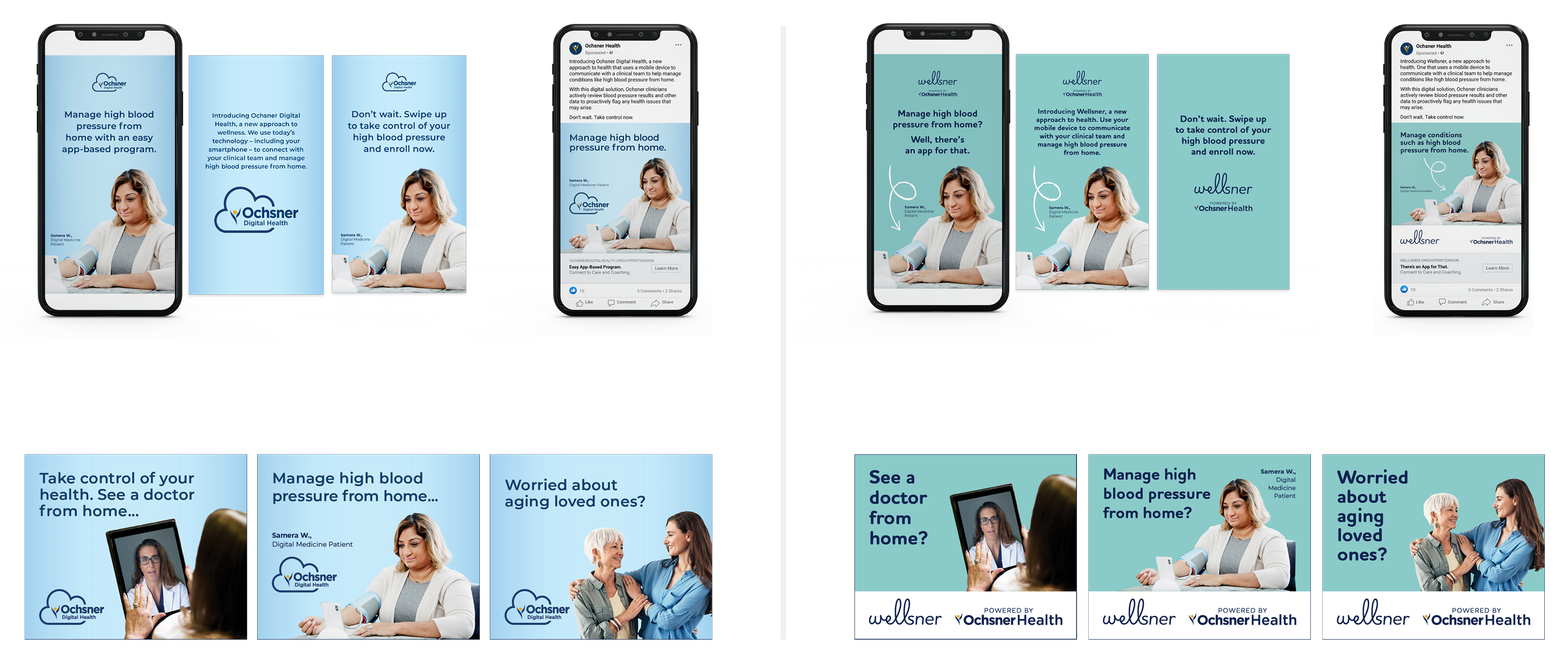 The health system needed to learn more about its new potential patients and consumers and determine what name, design concepts, and key benefits would resonate most with them before launching into a larger sales push. Ochsner turned to its longtime creative partner, Lightstream, based on our extensive experience developing phase one assets for this digital health campaign.